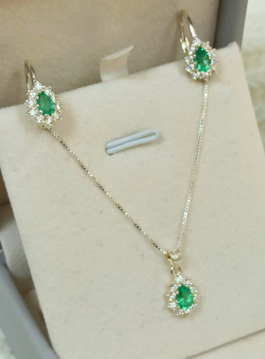 Trio en plata 9m25 con esmeralda y zircónes